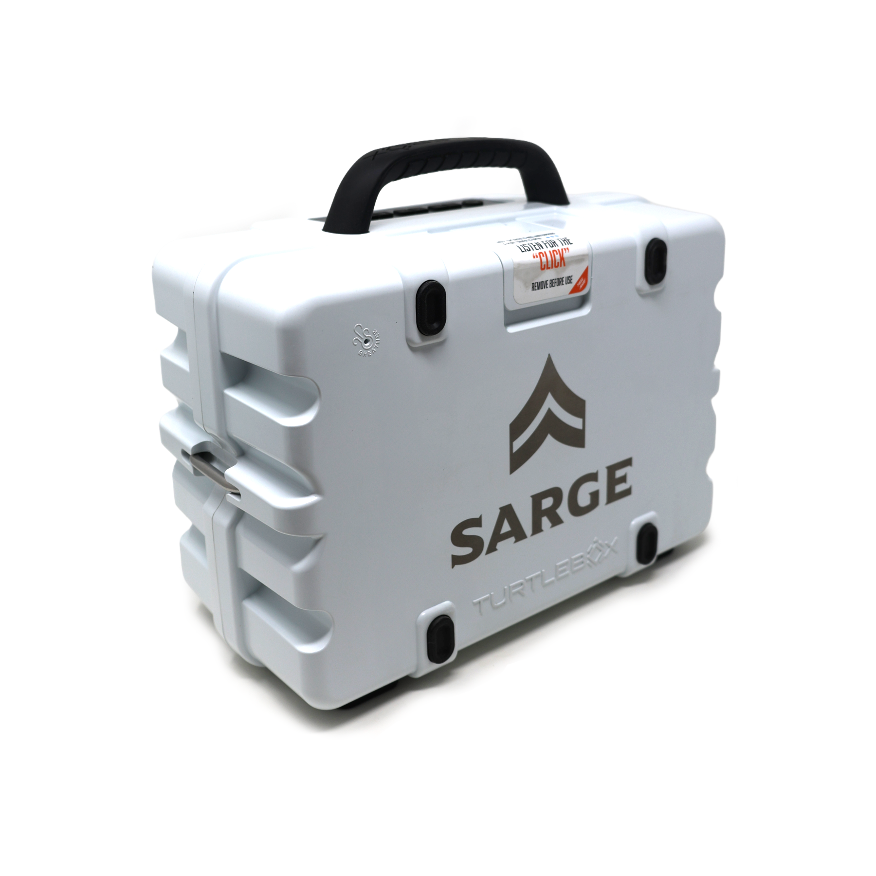 Step up to the SARGE Mission Loadout—the mid-tier bundle built for people who actually use their gear. Anchored by a laser-engraved Gen 3 Turtlebox, this package adds a GameGuard soft-side cooler embellished with the SARGE mark and a full trio of classic-logo SARGE-engraved YETI 30 oz handled ramblers in Patrol Red, Arctic White, and Midnight Navy.
